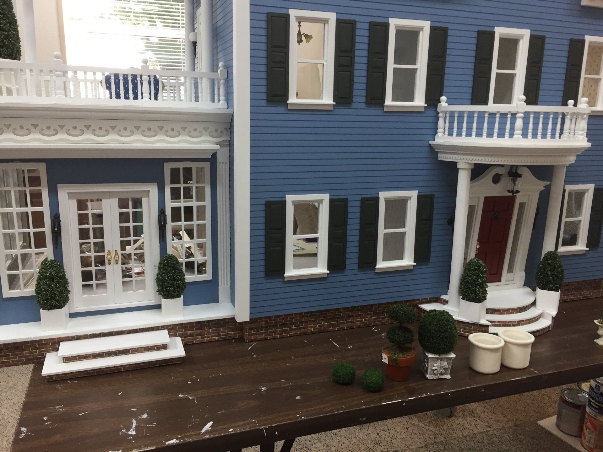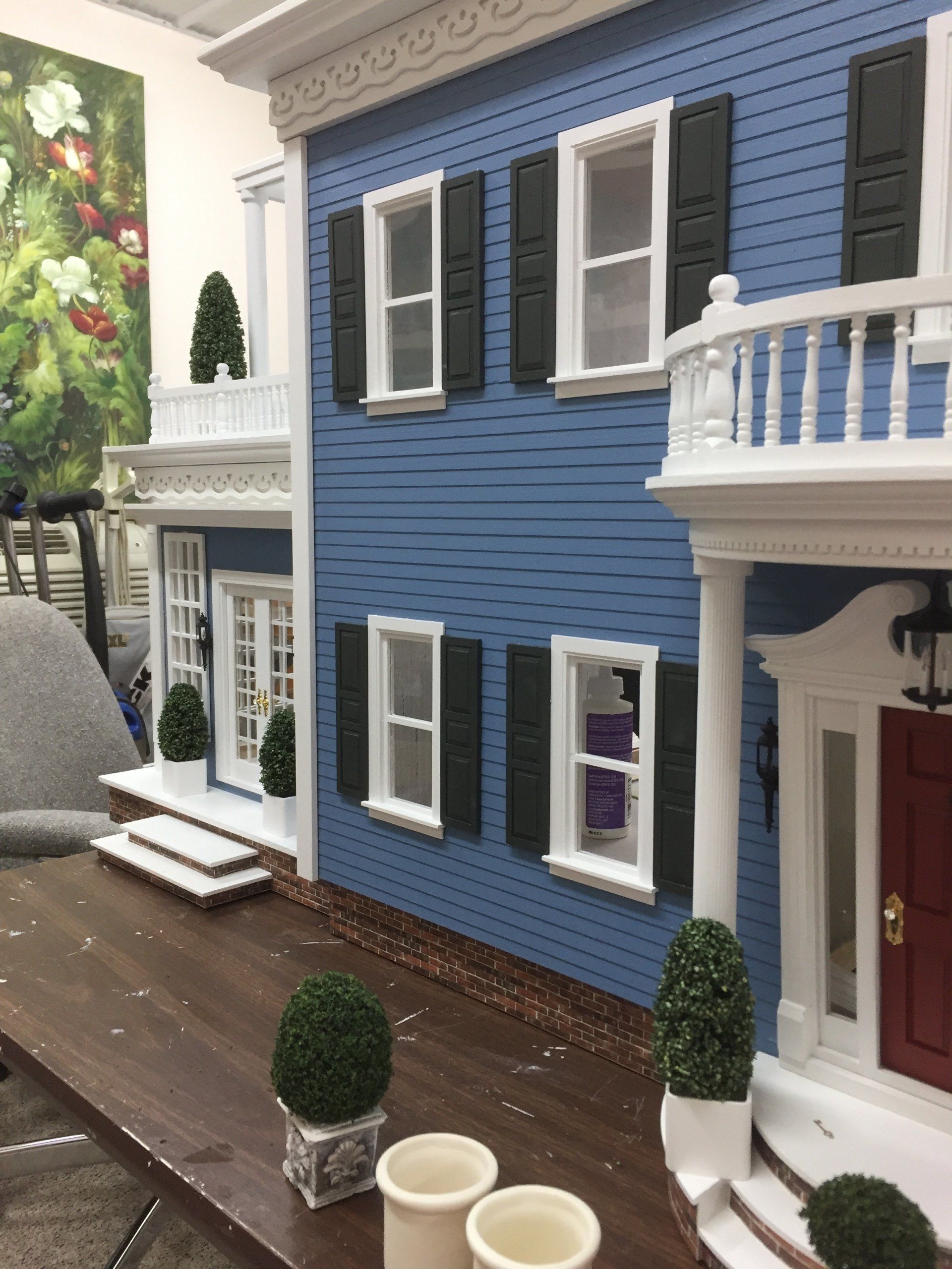 Although we have several houses in stock with the exterior (& some interiors) finished, we find most customers prefer to select their own wallpaper, carpeting, wood floors (with or without inlay), lighting fixtures, and the other decisions that personalize a miniature house. Therefore, most of our finishing work is done for our customers on an individual basis.